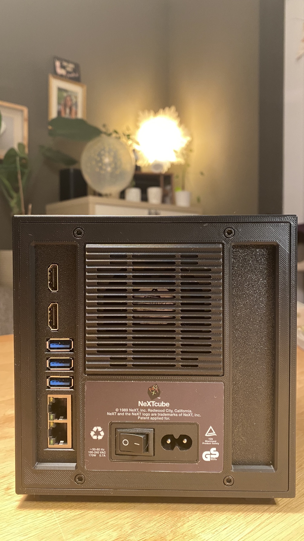 This is a 3D-printed miniature of the well-known NeXTcube from NeXT Computer, Inc.